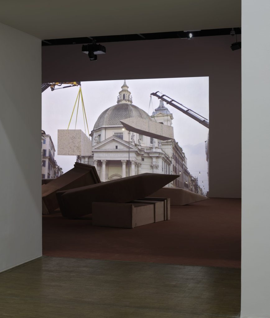 The video documents three separate events, referred to as staged interventions. The Flaminio Odelisk is plucked from its historical perch in Rome and dangles from a crane. Similarly a crew arrives, throws up some traffic cones and removes the statue of a notorious French military office Joseph Gallieni, from the spot in Paris where it has stood for more than 100 years. And finally, a giant marble depiction, of Christopher Columbus — one of the defining historics monuments of the city — is driven through the streets of Madrid, on a flatbed truck. In each of these case, mayhem ensues, amid onlookers and social media.