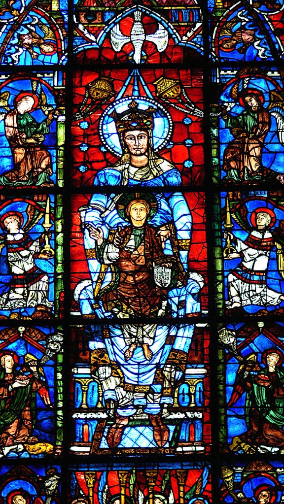 The Virgin Mary in the stained glass window at Chartres Cathedral