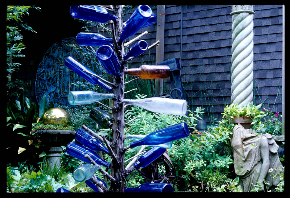 “When African slaves arrived in the U.S., they created bottle trees from dead trees or large limbs next to their quarters and adorned them with glass bottles scavenged from garbage piles,” Doreen Howard wrote on Almanac.com. “Blue bottles were coveted, because they repelled evil and trapped night spirits to be destroyed by the rising sun. Many Milk of Magnesia bottles ended up on trees!”
