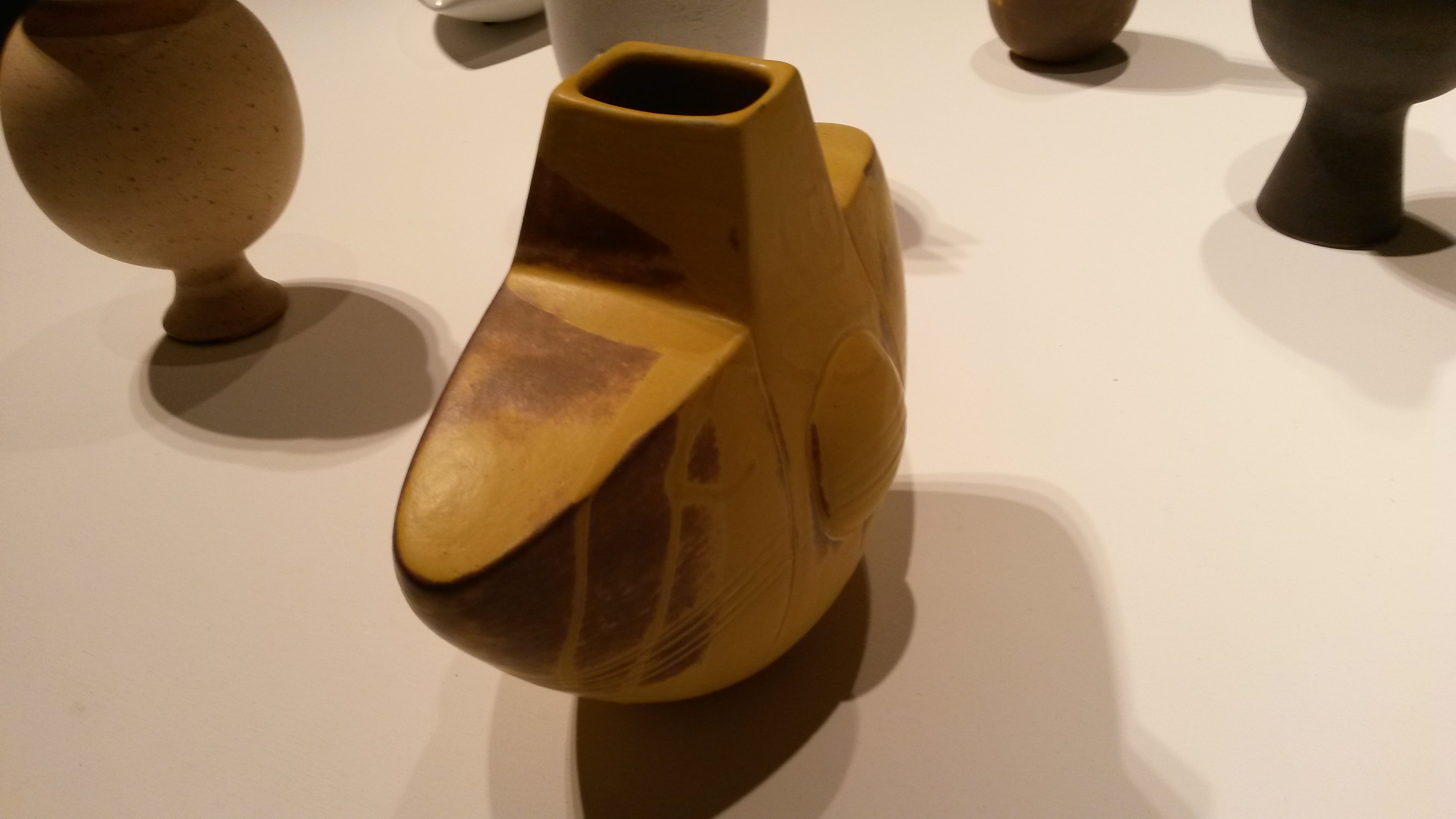 A bust looking out over the gallery above eye level has a shocking quality. It is approached from the rear and it’s only on walking around it to see the front that the viewer is startled to find it has been violently defaced.