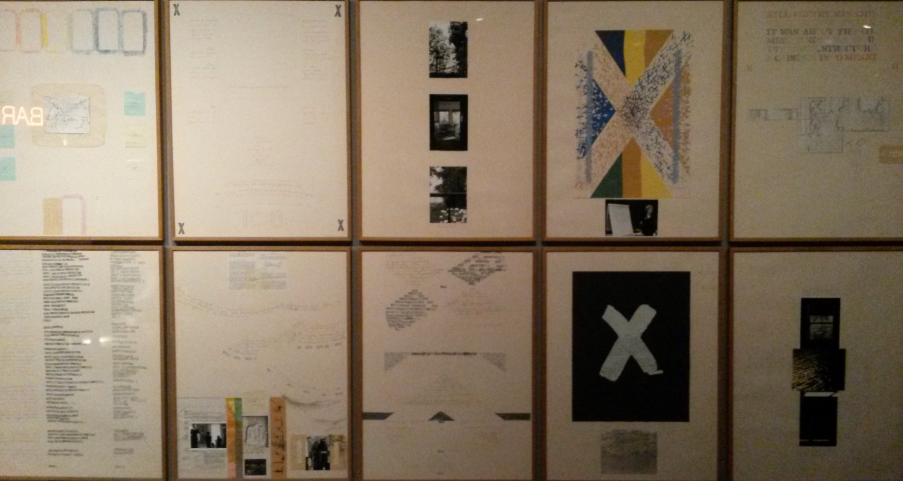 Another piece by the collaborating artists, Neil Farber and Michael Dumontier, is sheer poetry. Dozens of epigrammatic phrases are displayed in a grid of framed pieces.